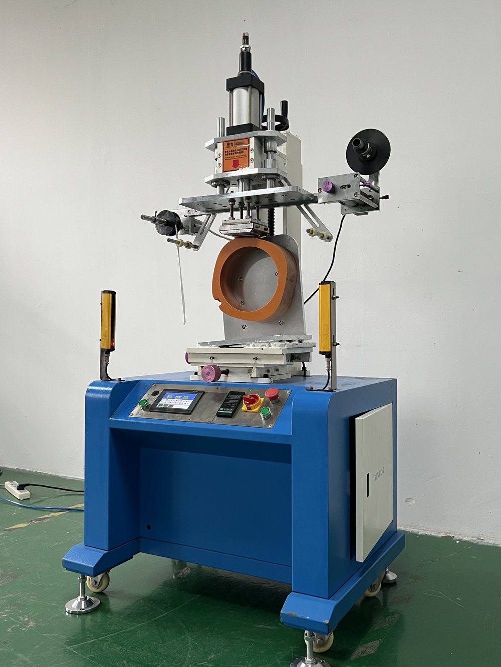 * 加裝光電管(臺灣FOTEK電眼,每秒250次高精度動作)對帶定位點的熱轉(zhuǎn)印紙精確跟蹤控制。